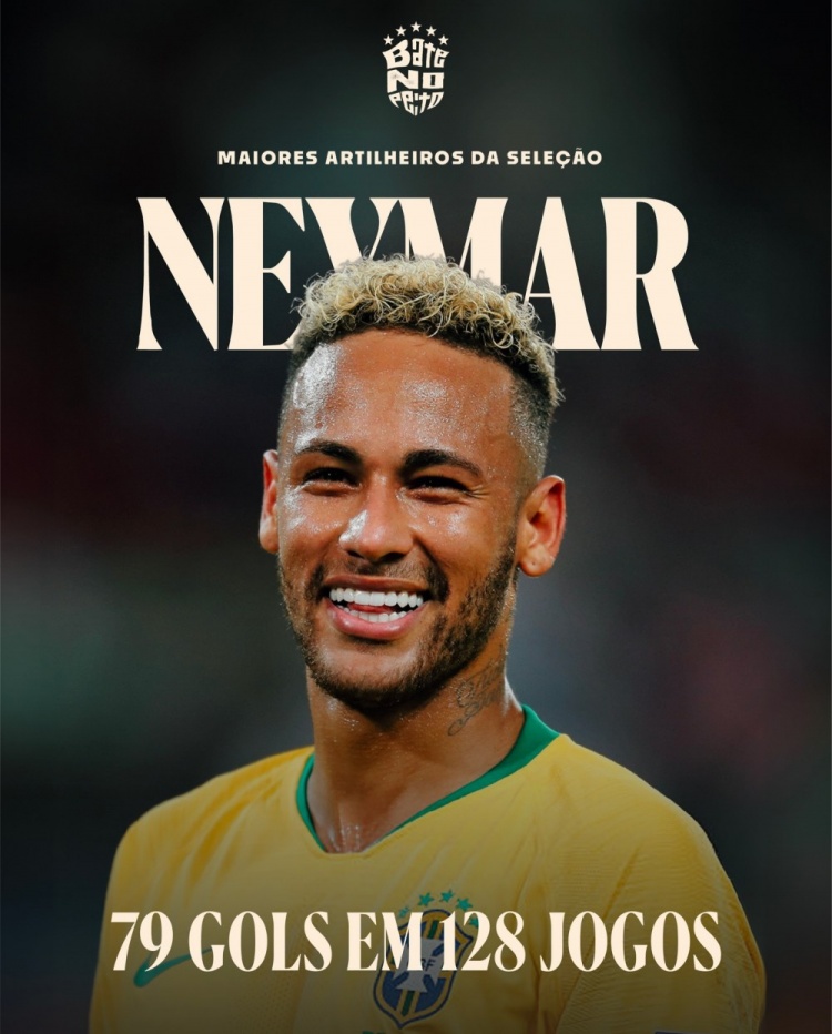 加克波 巴西官方社媒晒队史五大弓手:内马尔居首,贝利、大罗二
