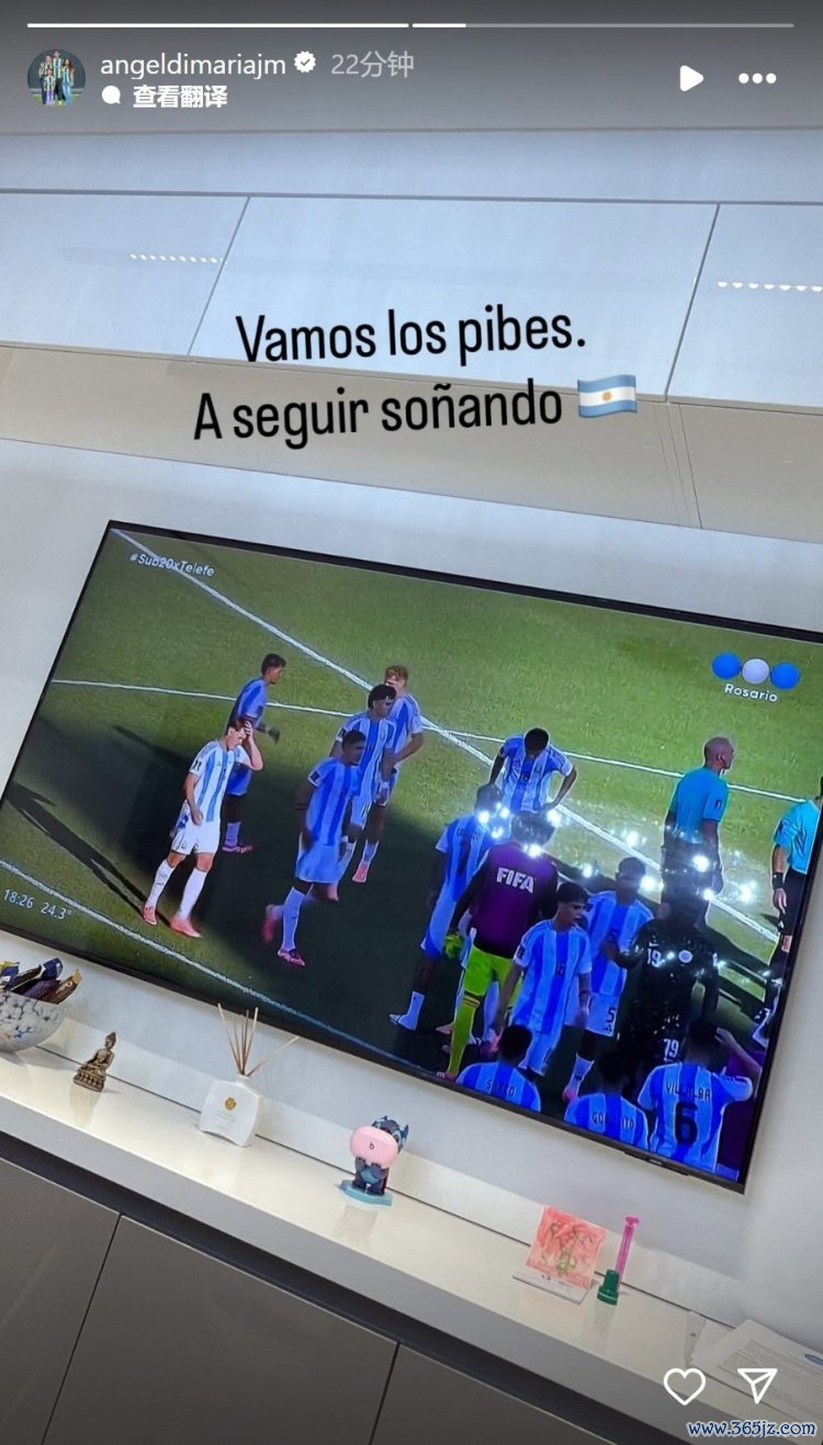 迪马利亚通过电视不雅看了阿根廷U20的比赛,他在搪塞媒体上晒出像片,配文:“干得漂亮,小伙子们,继续追赶梦念念!”
