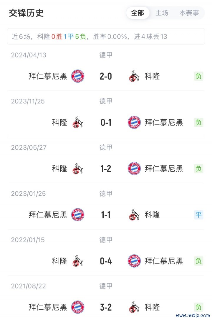 拜仁联赛8轮全胜积24分位居德甲榜首,开季13场全胜;科隆联赛3胜2平3负积11分暂位德甲第8,近2轮不堪。拜仁对阵科隆已邻接20场不败(18胜2平)。