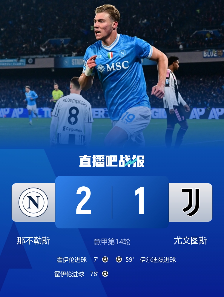 伊尔迪兹破门,霍伊伦完成双响。最终那不勒斯2-1尤文。