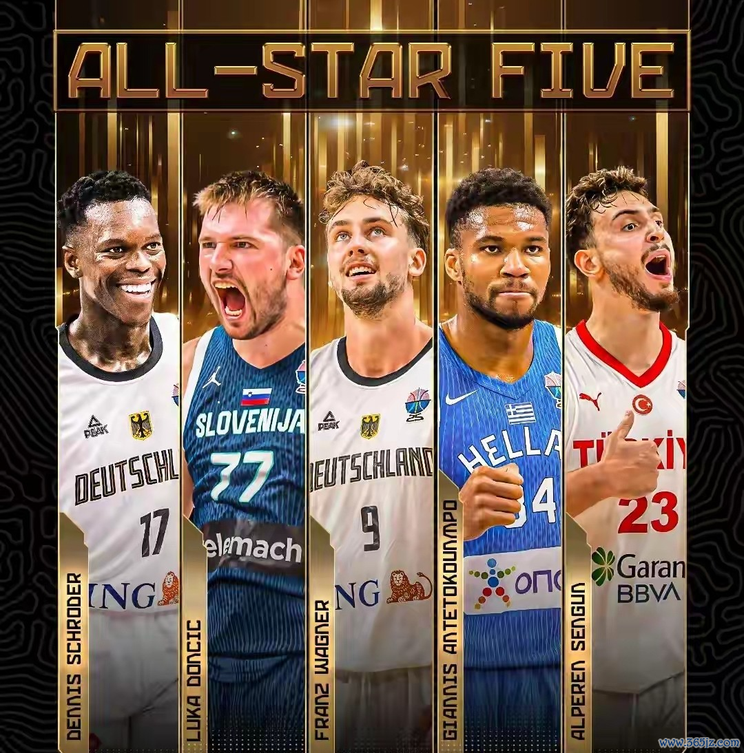 德国队这边,邦加11投8中,三分4中4,高效地砍下20分5篮板3助攻1抢断1盖帽,在球队追分阶段,他总能实时站出来得分,是球队夺冠的精深元勋之一,也荣获总决赛mvp。小瓦格纳得到18分8篮板2助攻2盖帽,他在攻防两头齐阐扬得迥殊全面,既要在内线起义申京,又要参与快攻,是德国队锋线的中枢东谈主物。施罗德全场11投6中,得到16分3篮板12助攻1抢断。诚然前三节阐扬欠安,但在小节弱点时分,他挺身而出,用出色的冲破和踏实的罚球,匡助球队锁定胜局,展现出了又名超等球星的风姿。