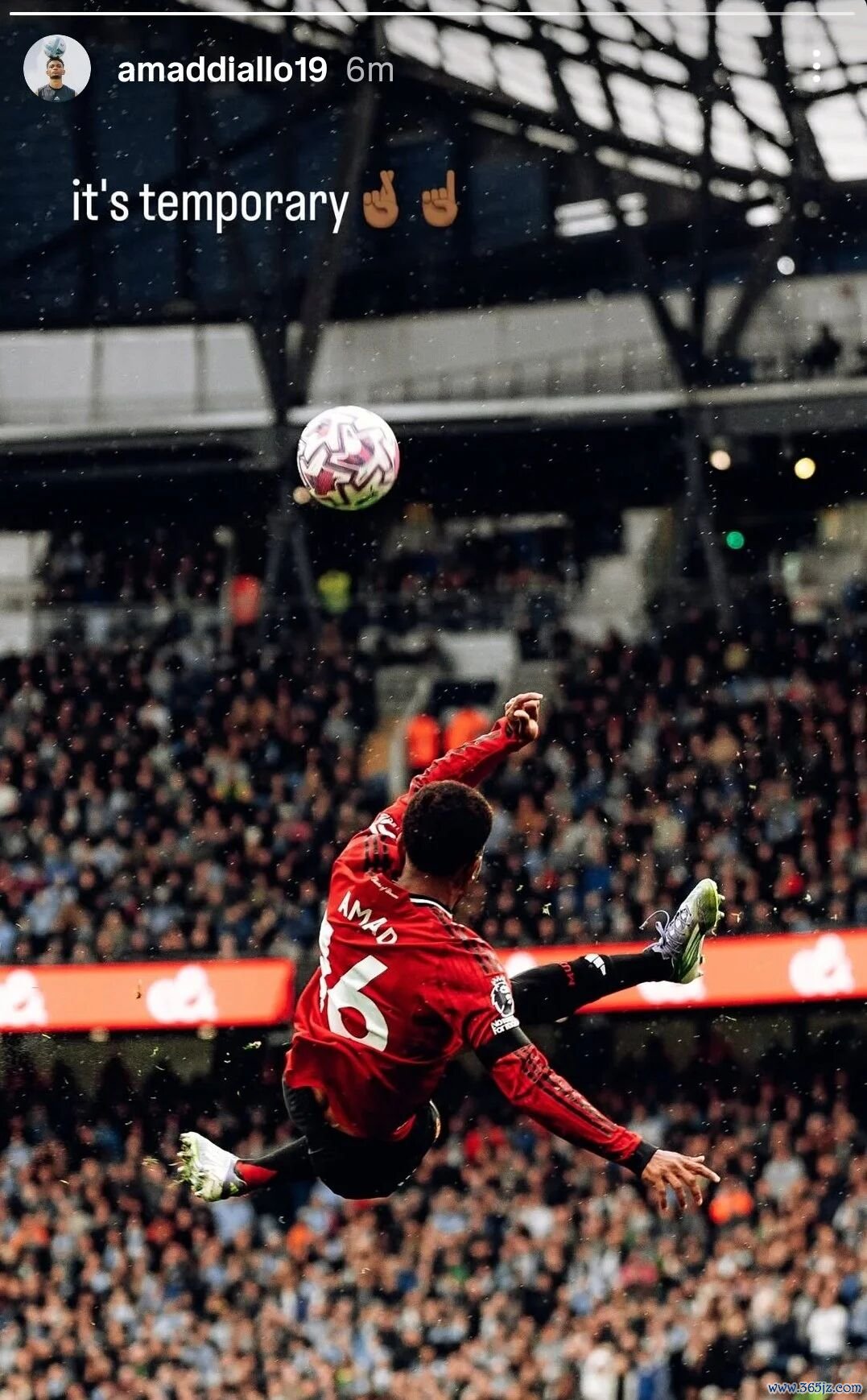 关于我方和曼联本赛季的问题,阿马德在社媒上给出了讲明:「这仅仅暂时的。」真谛的是,其配图是他尝试倒挂金钩射门的画面,无人不晓,那一脚无东谈主谨防之下的倒钩最终被阿马德踢成了突围。