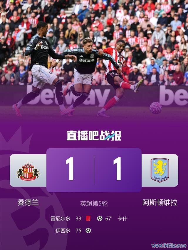 直播吧9月21日讯 北京技艺9月21日晚上21:00,英超第5轮,桑德兰镇守光明球场迎战阿斯顿维拉。上半场,罗夫斯力保球门不失,雷尼尔多撩阴脚染红。下半程,卡什重炮破门,扎卡助攻伊西多抽射扳平。全场约束,桑德兰1-1阿斯顿维拉。本场事后,桑德兰积8分名轮番7,阿斯顿维拉积3分名轮番18。