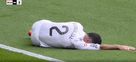 第39分钟,一声惨叫,卡瓦哈尔与冈萨雷斯扞拒后不幸倒地