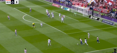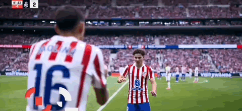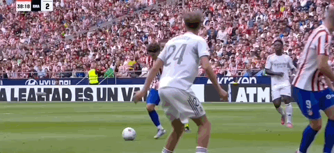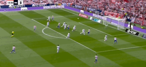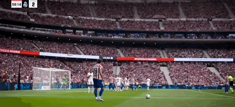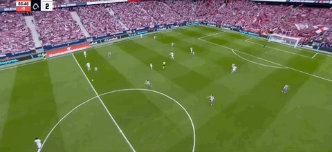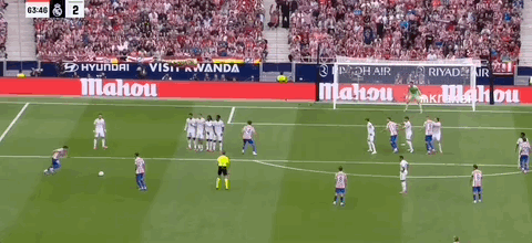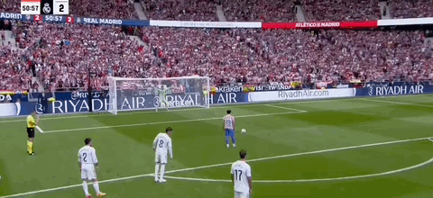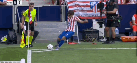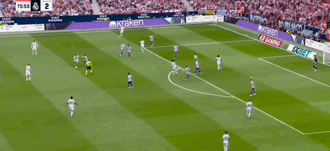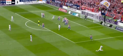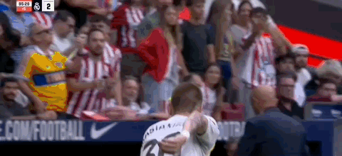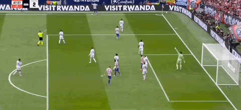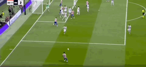 第45+3分钟,科克送传中,瑟洛特头球破门,马竞2-2扳平皇马!