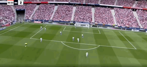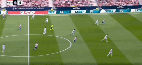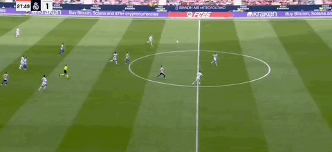 第34分钟,贝林厄姆断球后带球鼓励分球,维尼修斯传中被挡