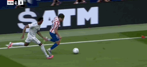 第17分钟,阿尔瓦雷斯邻接冲突后传中,贝林厄姆回防将球铲断
