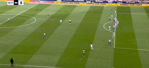第19分钟,冈萨雷斯边路传中,马竞中路两点包抄错过