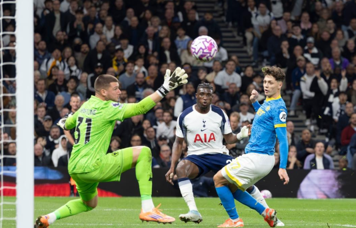本场比赛热刺排出4231阵型。里沙立松顶在最前边。库杜斯、贝里瓦尔和哈维-西蒙斯的艰难组合携手出击。帕利尼亚和本坦库尔构成双后腰。斯彭斯、罗梅罗范德芬和乌多基构成4中场。维卡里奥担任首发门将。布伦南-约翰逊和萨尔坐在替补席待命。