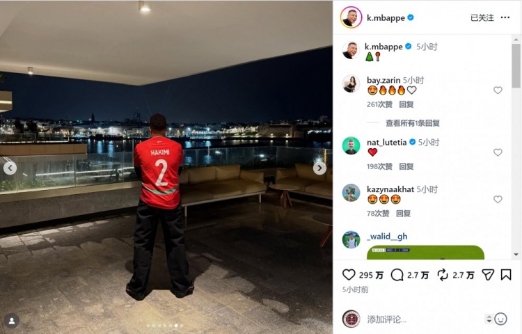 姆巴佩现场不雅看了摩洛哥vs马里的非洲杯比赛,他在酬酢媒体上晒出多张圣诞节时刻的像片,其中包括身穿阿什拉夫球衣的像片,抒发对好友的赞助。