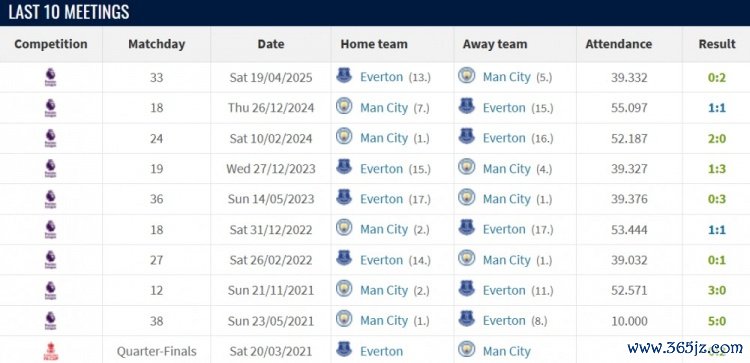 10月18日讯 英超第8轮,曼城主场对阵埃弗顿。两边近10次交手,曼城8胜2平保执不败,进23球失3球。