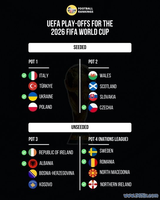 据外媒Football Rankings报说念,意大利已证明成为第一档种子队,将在附加赛半决赛主场迎战第四档球队,潜在敌手及出现概率为: