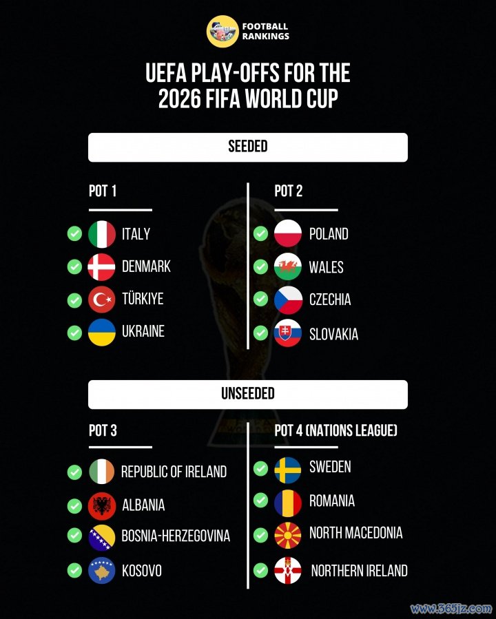 四档:瑞典、罗马尼亚、北马其顿、北爱尔兰