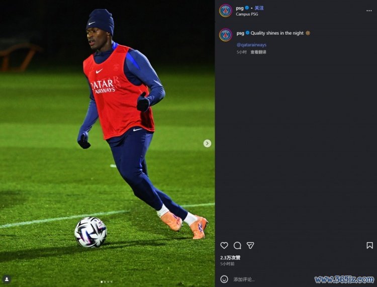 11月21日讯 巴黎官方社媒晒照,努诺·门德斯过问磨练。
