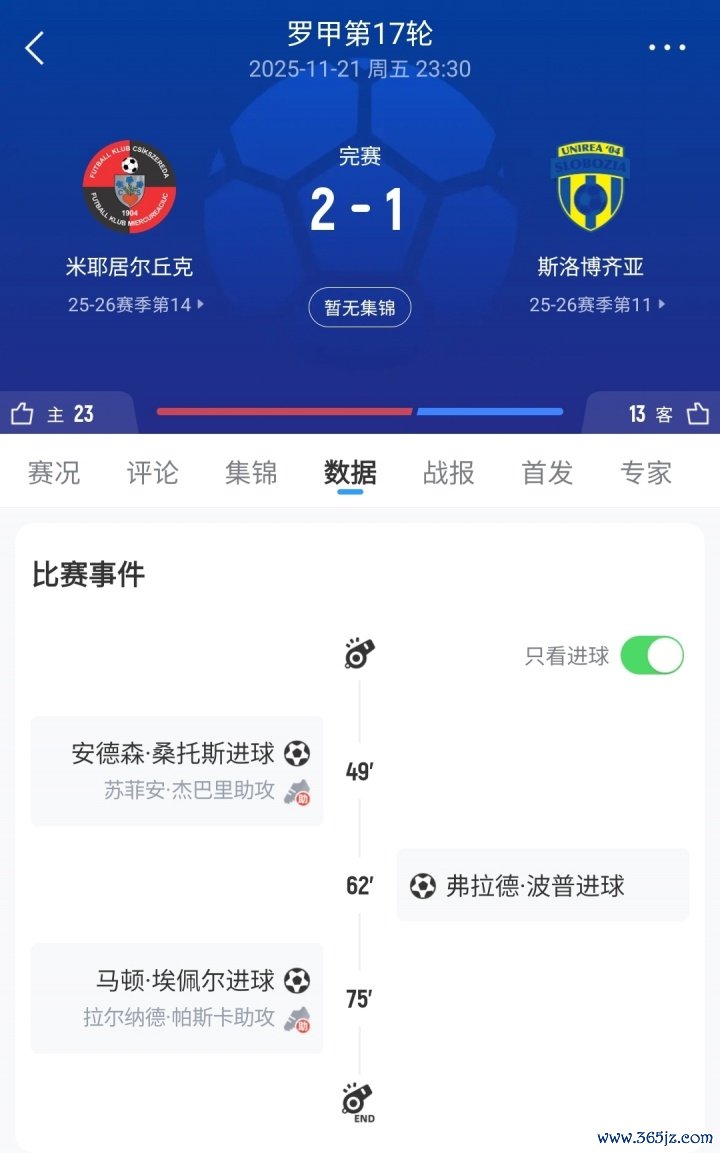 11月23日讯 在近日末端的一场罗马尼亚甲级联赛中,米耶居尔丘克2-1打败斯洛博皆亚,比赛一度被大雾隐藏。
