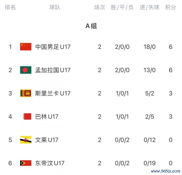 当今,U16国足2战全胜轰18球积6分位列小组第一;文莱2战全负丢12球位列小组倒数第二。
