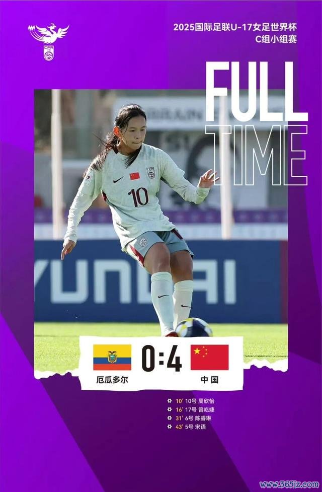 北京时辰10月24日,U17女足宇宙杯小组赛第三轮在摩洛哥拉巴特连续进行。在C组一场出线权争夺战中,中国队以4比0征服厄瓜多尔队,以小组第二名身份晋级十六强淘汰赛阶段比赛,创造了修复该赛事的历史最佳获利。